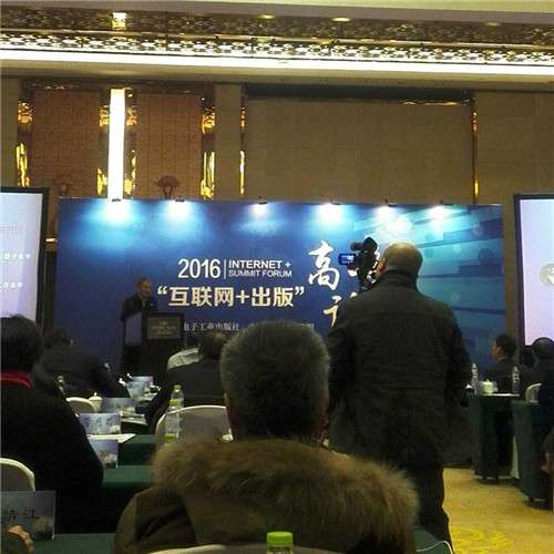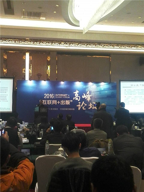 2016年1月6日,由电子工业出版社与中国出版传媒商务周报主办的“2016“互联网+出版”高峰论坛”在京举行。论坛首先由致辞,工业和信息化部办公厅副主任陶少华,电子工业出版社总编兼副社长刘九如,北京发行集团有限责任公司党委书记、董事长、总经理李湛军,广东新华发行集团总经理蒋鸣涛,深圳出版发行集团党委书记、总经理尹昌龙分别做主题发言,来自全国各地的百余位新华书店领导参加,中国出版传媒商务周报党委书记、副社长任江哲主持。