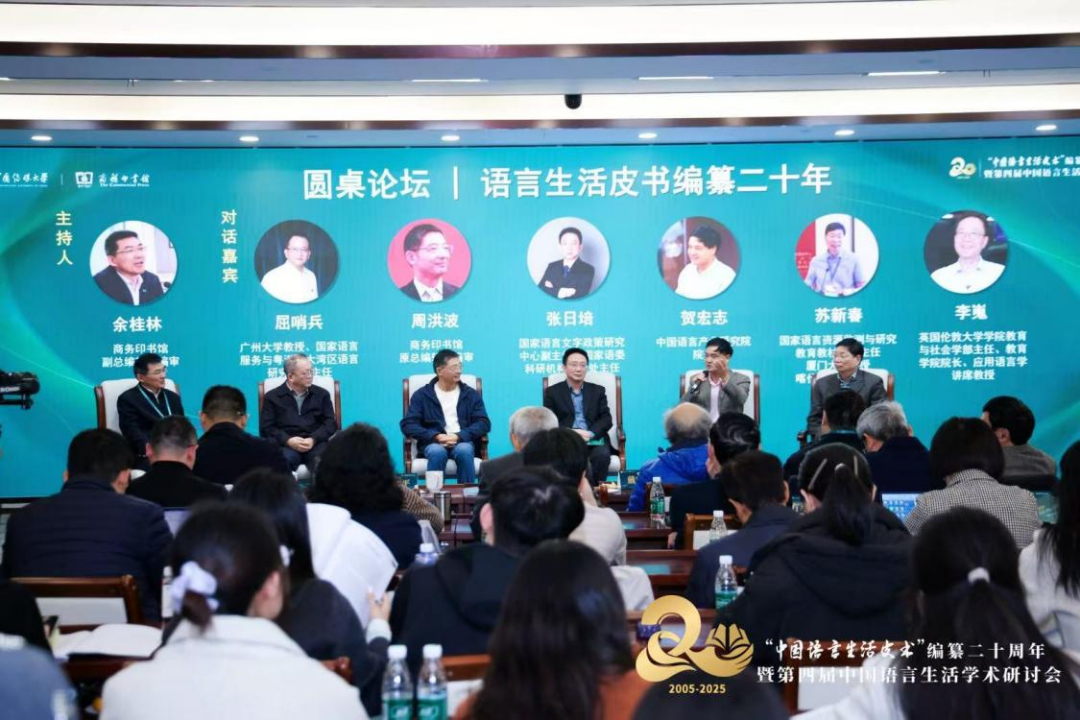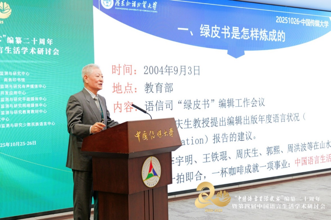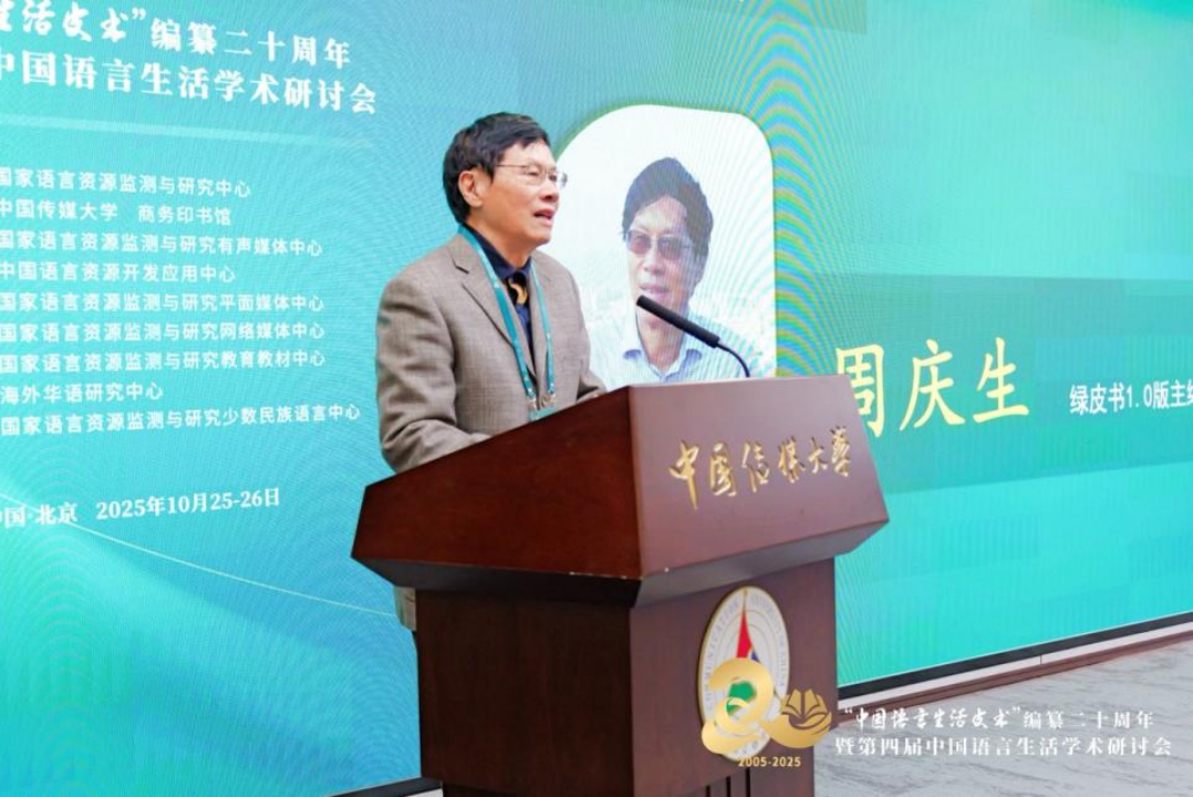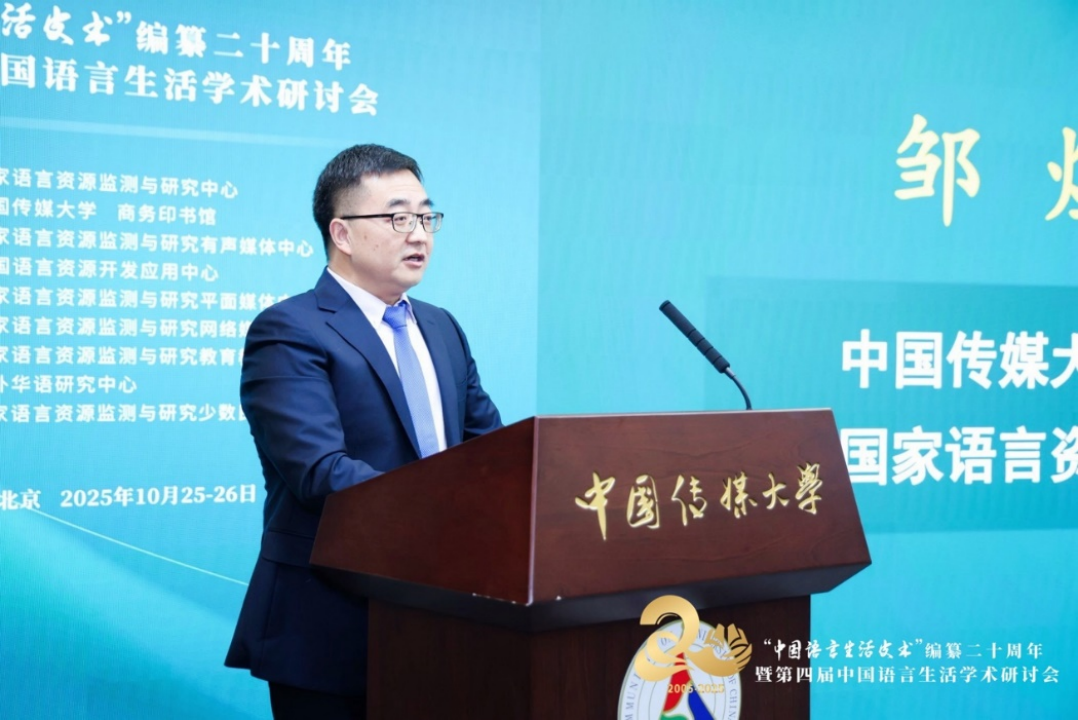 2025年10月25日至26日,“中国语言生活皮书”编纂二十周年暨第四届中国语言生活学术研讨会在中国传媒大学成功举办。本届研讨会由国家语言资源监测与研究中心指导,中国传媒大学和商务印书馆联合主办,国家语言资源监测与研究有声媒体中心、中国语言资源开发应用中心承办,国家语言资源监测与研究平面媒体中心、国家语言资源监测与研究网络媒体中心、国家语言资源监测与研究教育教材中心、海外华语研究中心、国家语言资源监测与研究少数民族语言中心共同协办。来自国内外高校、科研机构及语言政策研究部门的148位专家学者出席会议,共同回望二十年来中国语言生活研究成果,研讨智能时代语言文字事业新命题。