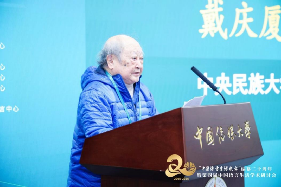戴庆厦在致辞中指出,中国语言学研究必须坚持走符合我国自主创新、立足本土的学术研究之路,也是我国语言学学科建设必须遵守,得以创新发展之路。语言生活皮书工作涵盖方方面面的、大量开放性的任务,在服务国家制定方针政策、推动语言生活健康发展方面发挥了重要作用。在谈及正确处理语言研究中“本体研究”与“应用研究”的关系时,戴庆厦结合少数民族语言研究经历表示:“我这几年写作任务也是这么走过来的,我深深体会到语言应用研究为语言本体研究提出了实在的内容,有价值的方向,能够持续开展研究的动力和条件。”他总结道:“这是一条必须坚持的共同理念”,并呼吁学界既要擅长本体研究也要关心应用问题,让语言学研究更好服务国家战略需要。
