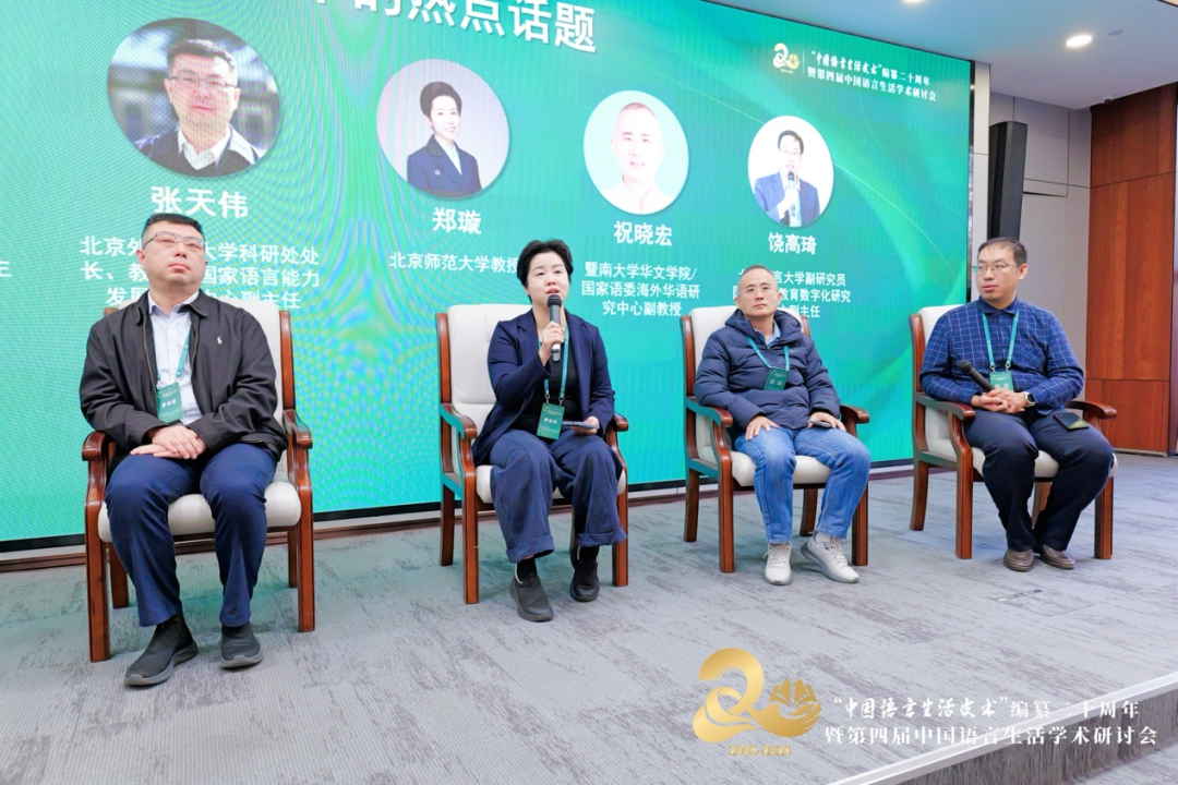 在圆桌论坛环节,与会专家围绕“语言生活皮书编纂二十年”“语言生活中的热点话题”展开热烈讨论,对语言生活研究的理论体系建设、语言智能应用与人机共生的未来方向提出了多维度的见解。