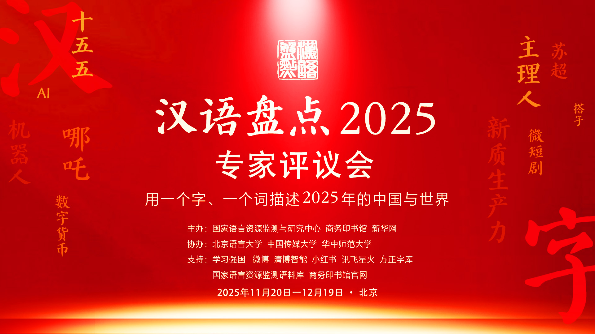 日前,“汉语盘点2025”专家评议会以线上线下结合的方式在商务印书馆举行。评议会上,专家们各抒己见,讨论热烈。大家认为,评选出的年度字词,要切时切事,捕捉提炼当年的核心议题,搜集凝聚当下的社会共识;要既有描写时代主题的庄重,又不失贴近生活的轻盈;要展现时代的精彩风貌,记录社会的快速发展,折射中国的深切关照。最终,在网友推荐结果的基础上,结合国家语言资源监测语料库、清博智能、小红书、科大讯飞等提供的字词热度,评议确定了前五位的年度字词。