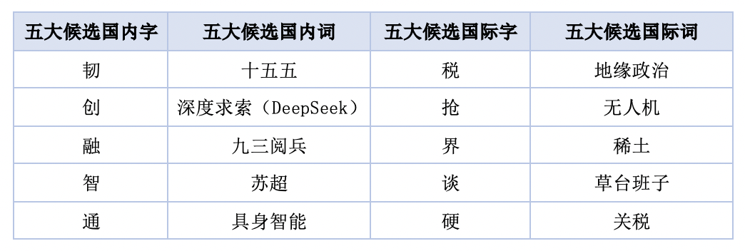12月9日,“汉语盘点2025”年度各组前五位字词正式出炉,“韧”“创”“税”“抢”“十五五”“苏超”“地缘政治”“稀土”等热门字词入围。