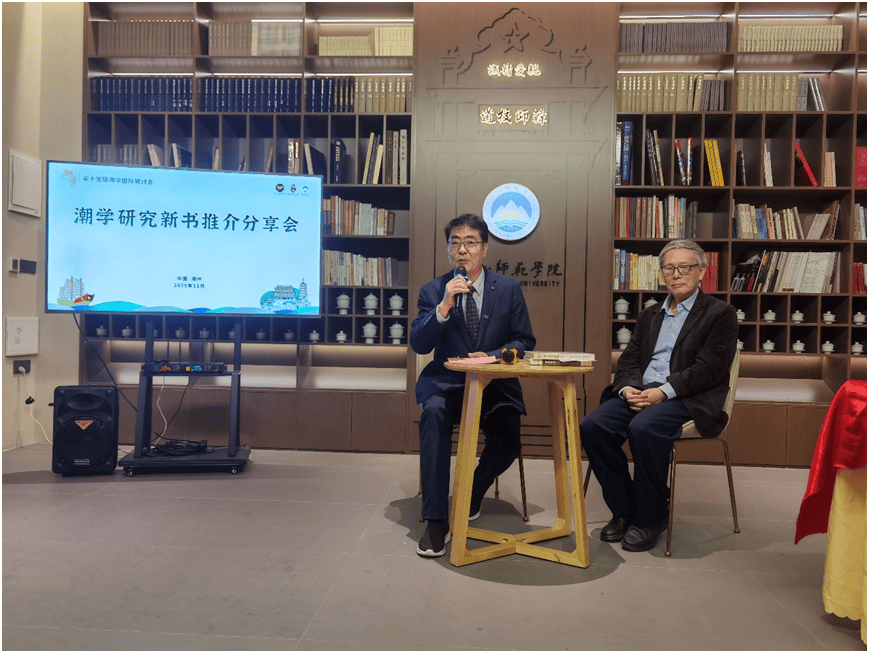 11月27日晚,潮学研究新书推介分享会在韩园餐厅宋叶山潮人茶院举行,国际潮学研究会执行会长、学术委员会主任委员林伦伦教授主持活动。韩山师范学院黄挺教授,国际潮学研究会执行会长林伦伦教授,韩山师范学院党委常委、副校长陈海忠教授,暨南大学朱巧云,商务印书馆副总编辑郑勇等嘉宾共同揭幕《潮学集成》新作。