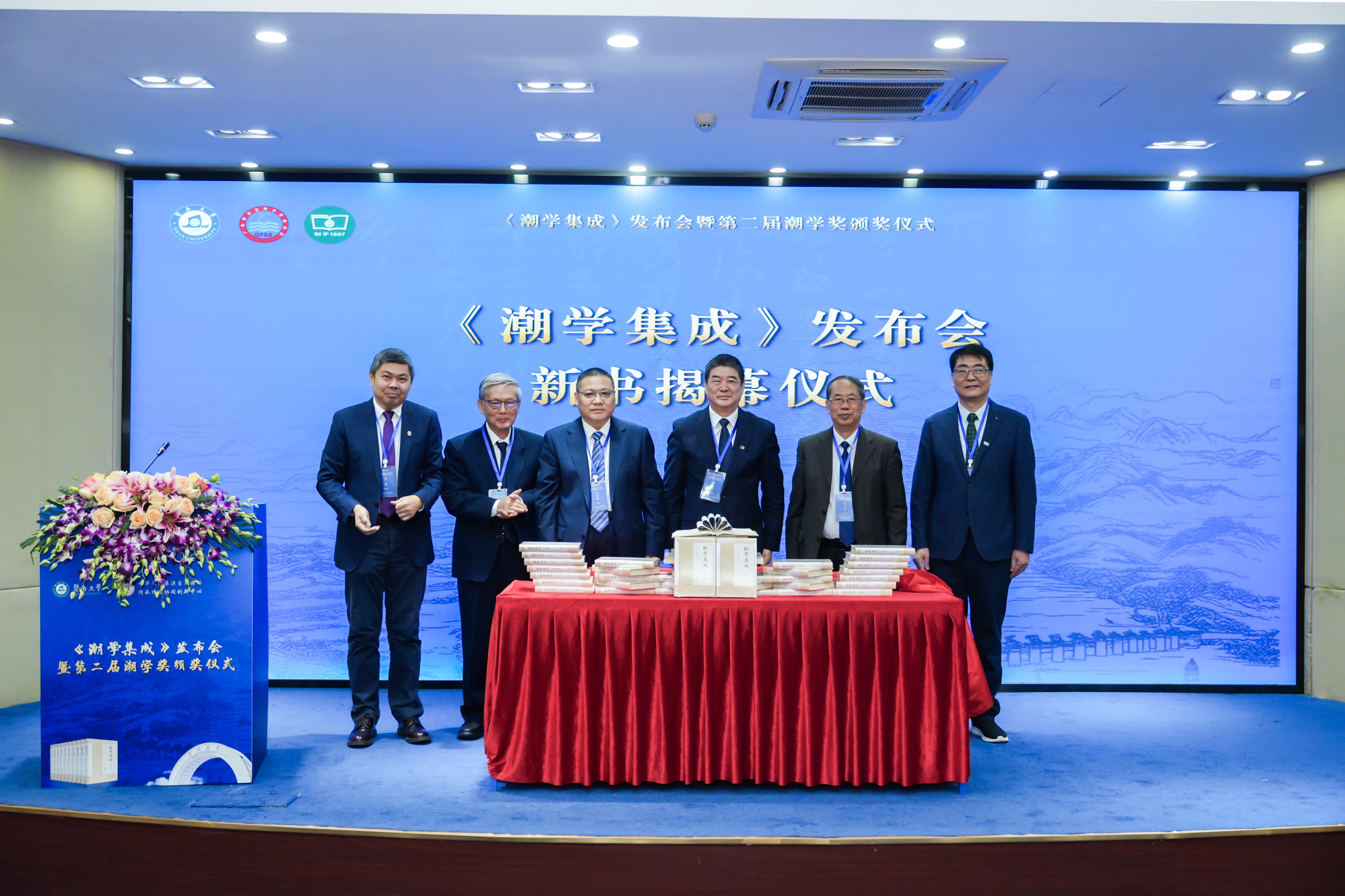 邢锋、李宜航、陈平原、林伦伦、夏泉、郑勇共同为这部凝聚20余位权威学者三年心血的潮学典籍揭幕。邢锋、李宜航、陈平原、林伦伦四位主礼嘉宾分别向广东省立中山图书馆、深圳图书馆、中共潮州市委宣传部、中山大学图书馆等9家受赠单位代表赠书,让这部学术著作惠及更多机构与读者,助力潮学知识的广泛传播。