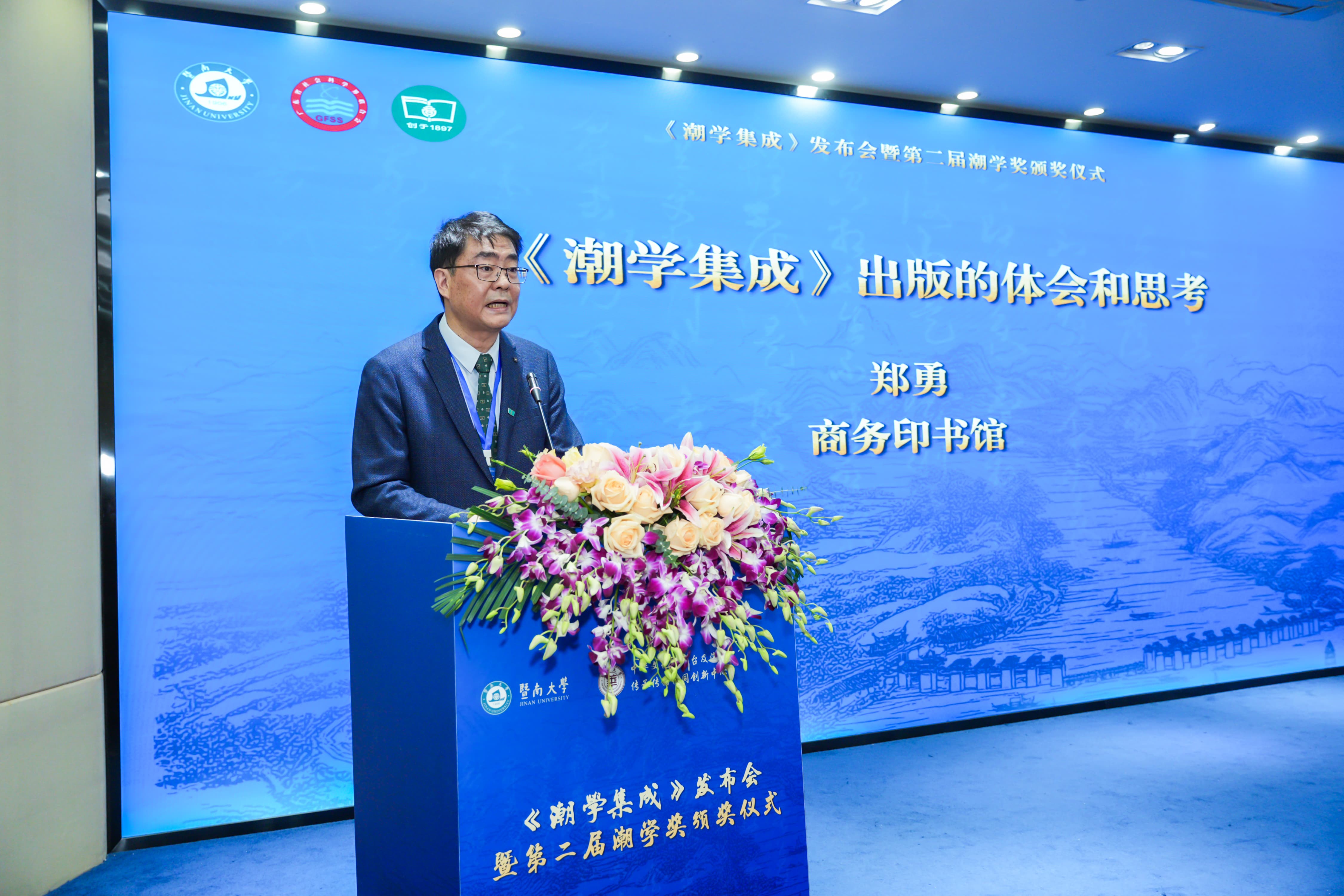 郑勇在嘉宾发言环节,表达了对“潮学”的首倡者饶宗颐先生的缅怀与感激之情。他回顾了商务印书馆与广东的文化渊源,分享了《潮学集成》的出版细节,高度评价了其在潮学研究的里程碑意义。他表示,希望能有更多的潮学研究成果出版,将商务印书馆打造为潮学研究成果出版的重要平台。