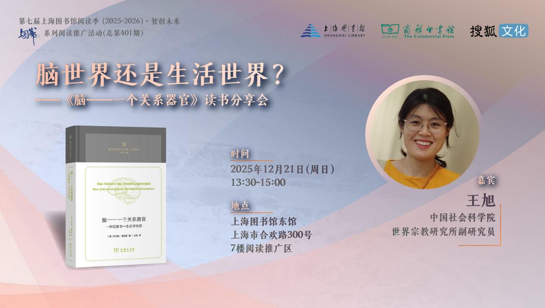 12月21日,以“脑世界还是生活世界?”为主题的《脑——一个关系器官》读书分享会在上海图书馆顺利举办。本次分享会邀请该书译者、中国社会科学院世界宗教研究所副研究员王旭,带领读者们深入剖析现代脑神经科学背后的哲学预设,探讨具身人论的核心内涵,并回应人文主义在数字时代的现实困境。