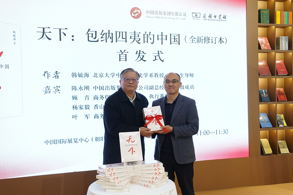 2026 年 1 月 8 日上午,商务印书馆出版的重磅力作《天下:包纳四夷的中国》(全新修订本)首发式,在第38届北京图书订货会中版集团展区隆重举行。中国出版集团有限公司副总经理、党组成员陈永刚,商务印书馆党委书记、执行董事顾青,香山革命纪念馆馆长杨家毅等嘉宾应邀出席,商务印书馆总编辑叶军主持首发式,现场学界专家、出版人及读者齐聚,共同见证这部阐释中华文明核心特质的思想著作焕新面世。