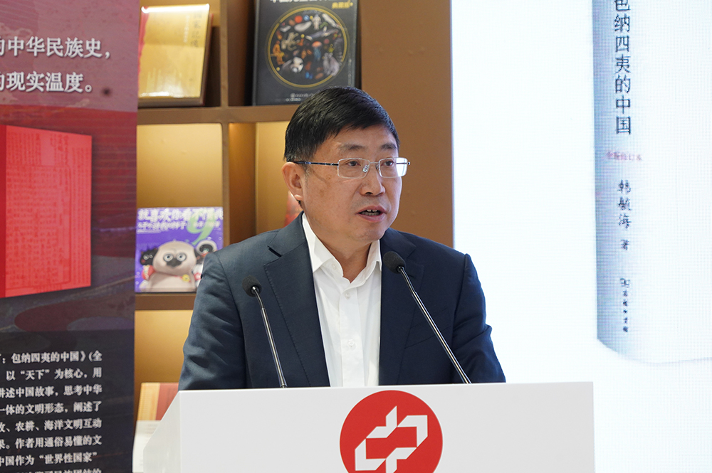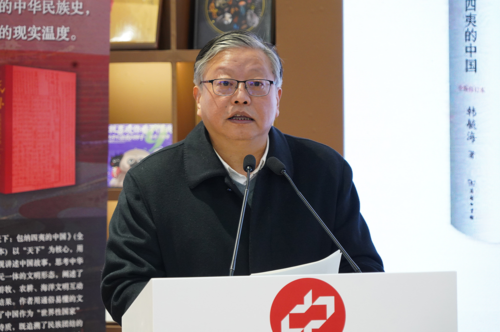 与会嘉宾围绕著作核心思想与时代价值展开深度研讨分享。中国出版集团有限公司副总经理、党组成员陈永刚指出,在“十五五”开局之年,《天下:包纳四夷的中国》(全新修订本)的出版恰逢其时,具有重要现实意义与时代价值。他强调,著作通过梳理中国与世界、中原与边疆、汉族与少数民族的交融历程,为构建人类命运共同体、铸牢中华民族共同体意识奠定了坚实的历史根基;更以大历史观深刻揭示中华文明“连续性、创新性、统一性、包容性、和平性”的核心特质,为全球治理贡献了独具东方智慧的中国方案。
