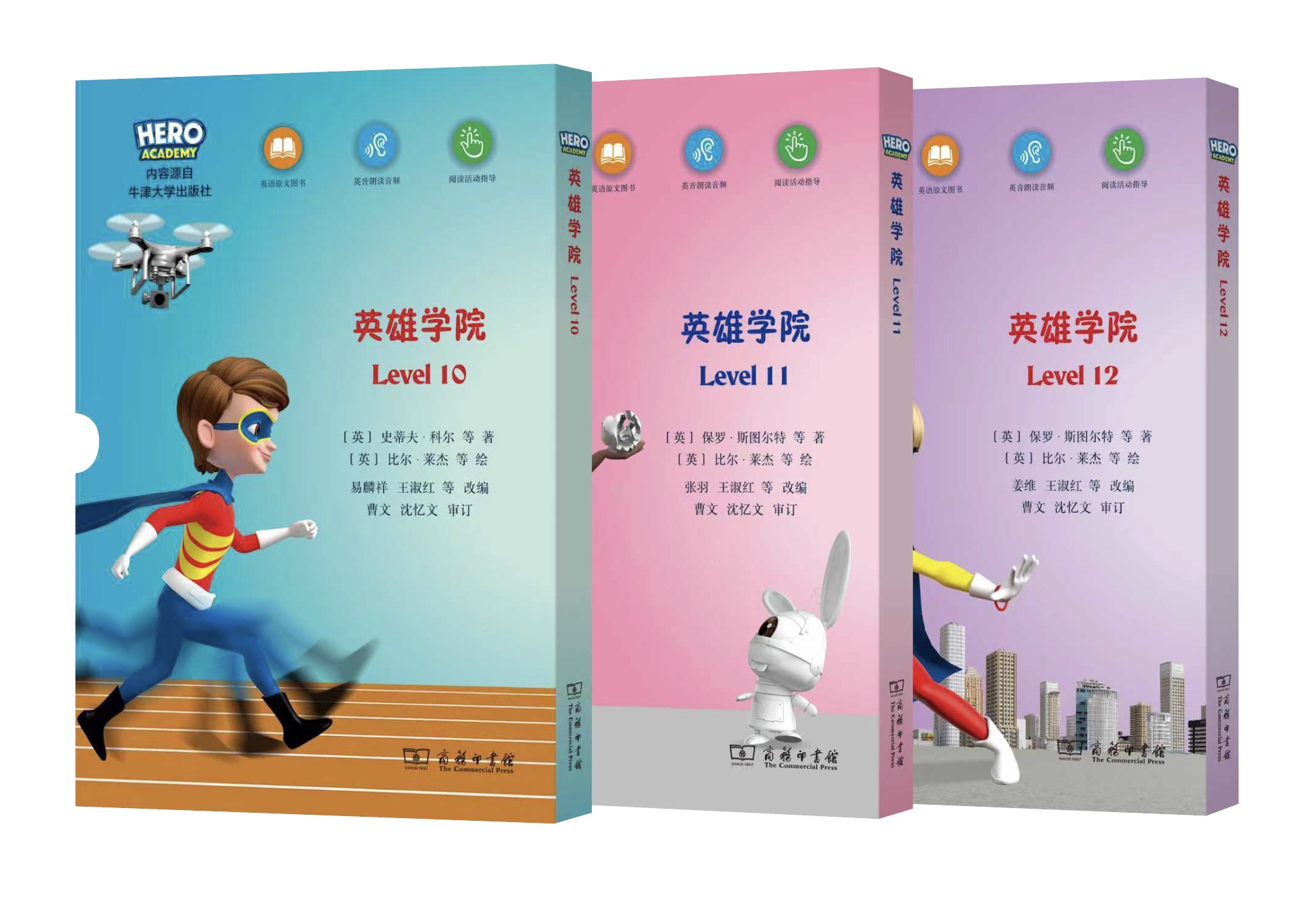 “X计划·英雄学院英语分级读物”是英国牛津大学出版社专门为小学生读者开发的英语分级读物,在英国用作小学教材。全套包括Oxford Level 1—12的117册书,其中虚构内容78册、非虚构内容39册,内容新颖有趣。虚构部分的故事背景为一所学校,学生都是有超能力的超级小英雄。在这所神奇的英雄学院中,小英雄们一起快乐地学习、成长,一起克服困难……非虚构部分聚焦现实生活中的平凡英雄,例如环卫工人、医生、营养专家,等等。小学生读者在阅读这些故事时会展开想象的翅膀,也会联系起自己的日常生活,还会了解不同行业的社会价值,同时能学到地道的英语。