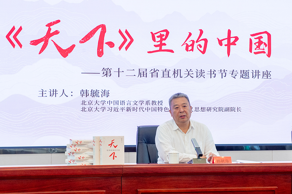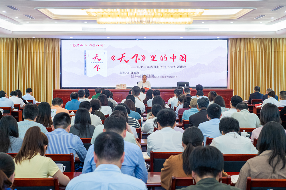 2026年4月23日,在首个“全民阅读活动周”期间,“卷启屏山 书香八闽”第十二届福建省直机关读书节在福州举行。北京大学中国语言文学系教授、北京大学习近平新时代中国特色社会主义思想研究院副院长韩毓海应邀作“《天下》里的中国”专题讲座,携《天下:包纳四夷的中国》(全新修订本)与福建读者见面,助力书香机关建设。